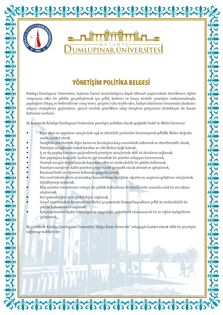 - Politikalarımız / Liderlik,Yönetişim ve Kalite Politikası