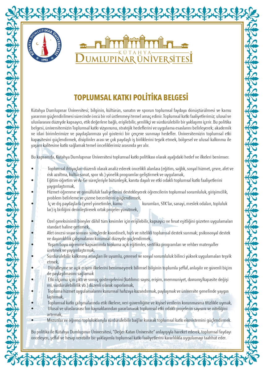 Toplumsal Katkı Süreçlerinde Öncelikli Alanlar