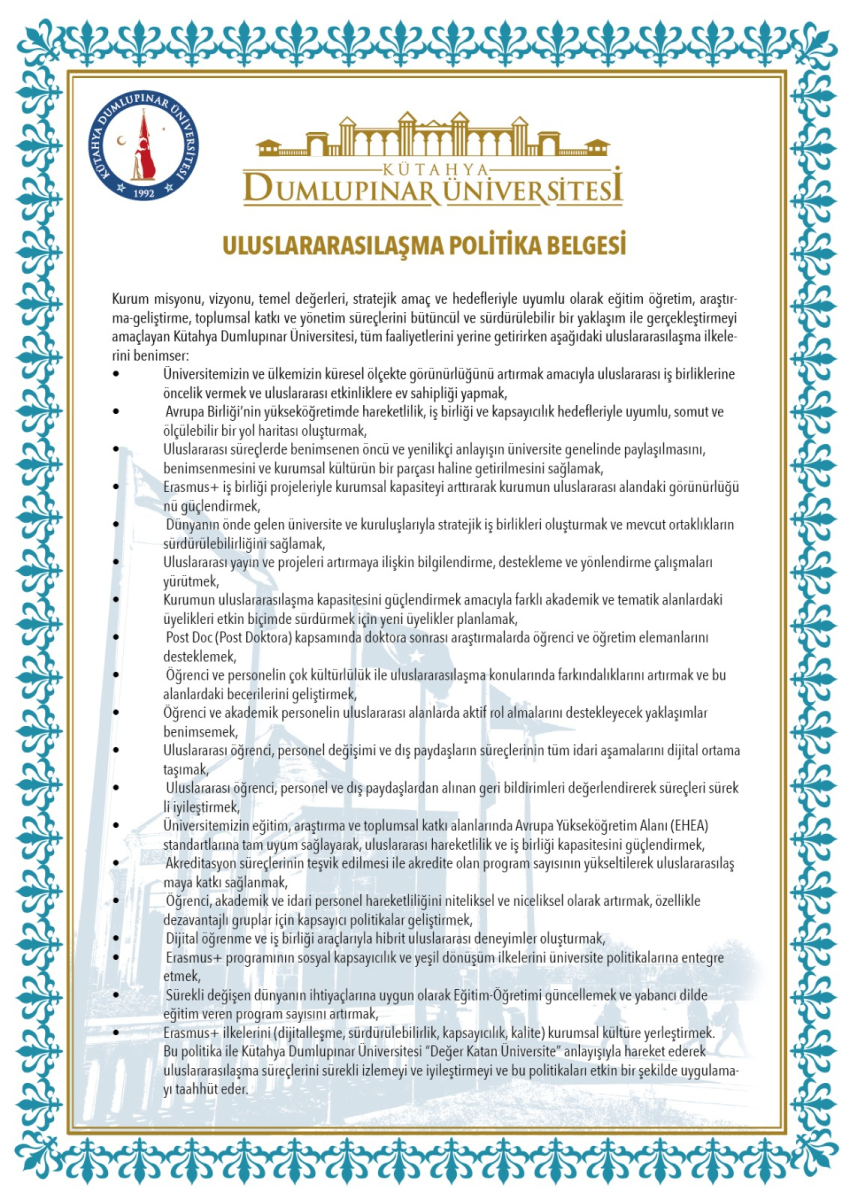 - Politikalarımız / Uluslararasılaşma Politikası
